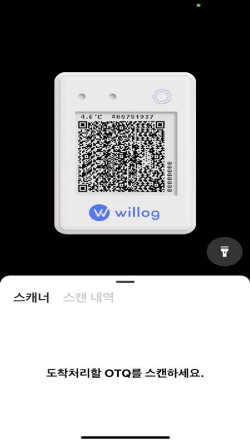 Logis Scanner로 윌로그 OTQ의 QR코드를 스캔하세요.