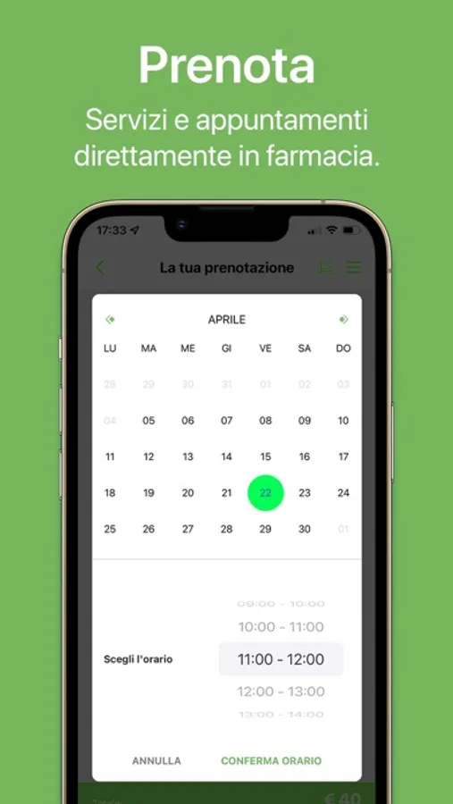 Organizzare il proprio tempo è fondamentale, per questo con l’APP Farmacia Aleda è possibile prenotare giorno e ora dei servizi erogati dalla farmacia verificandone le disponibilità.