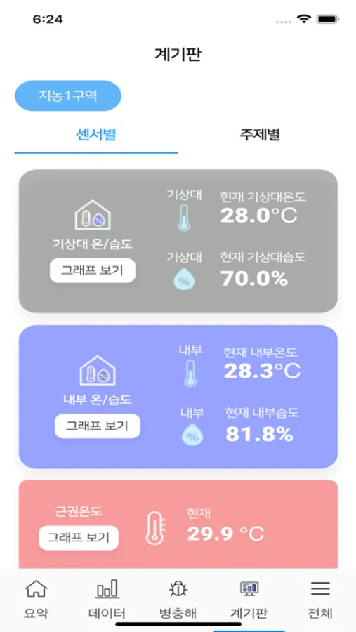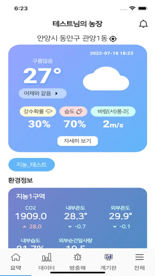 스마트팜 농장에 필요한 핵심 환경(온습도, 일사, Co2, 근권온도, ...)데이터를 제공합니다.