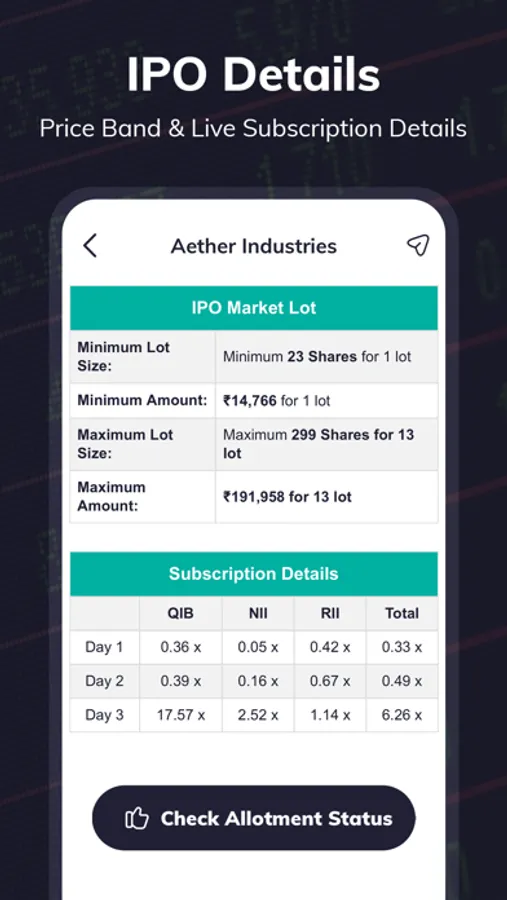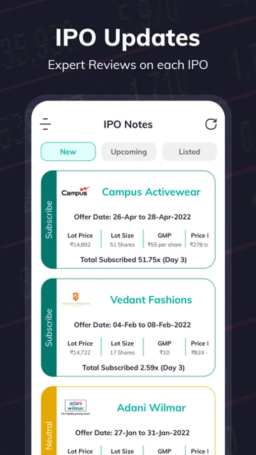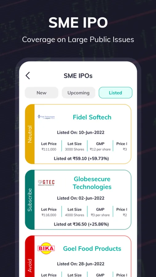 For all kinds of IPO news/guide / IPO Information, this app is helpful. It gives details of recent IPO, latest IPO, forthcoming IPO, new IPO listing, IPO grey market data, IPO allotment status, IPO review, and ratings, and proposed IPO with approval from SEBI and complete IPO calendar.
