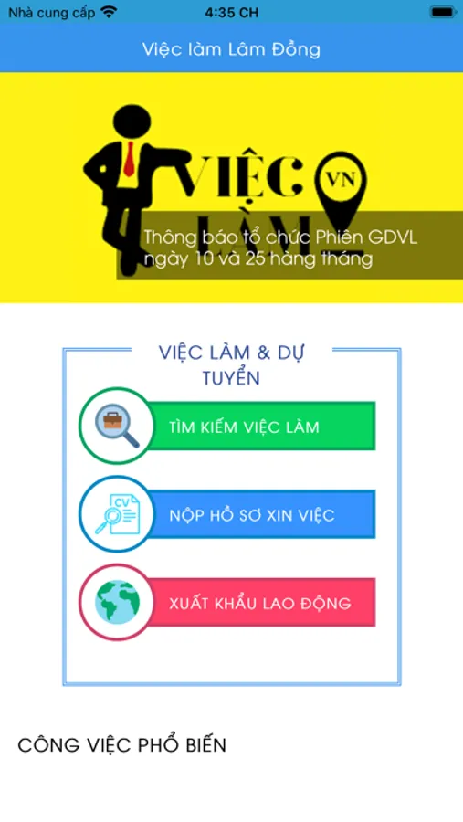 Ứng dụng cung cấp thông tin các chức vụ, công việc của các công ty đang tuyển dụng trên địa bàn tỉnh Lâm Đồng.