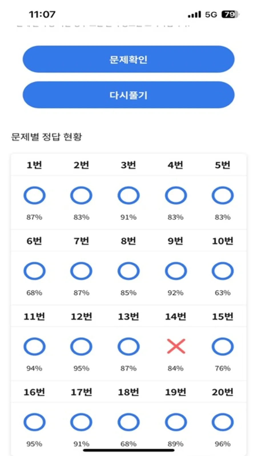 - 틀린 문제들은 자동으로 오답노트에 저장이 됩니다. 힘들게 오답노트를 만들 필요 없이 틀린 문제만 모아 학습해 보세요.