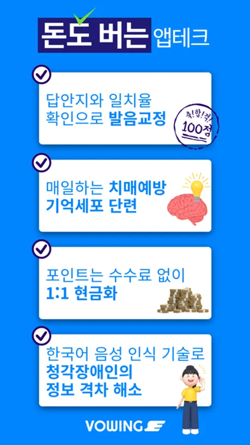 현금과 1:1로 쌓이는 포인트와 수수료 없는 출금까지, 돈버는앱 보윙과 함께해요!