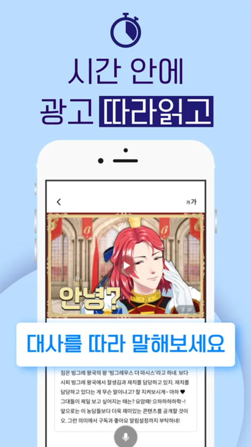 3. 녹음을 누르고 스크립트를 1분 이내에 따라 읽는다.