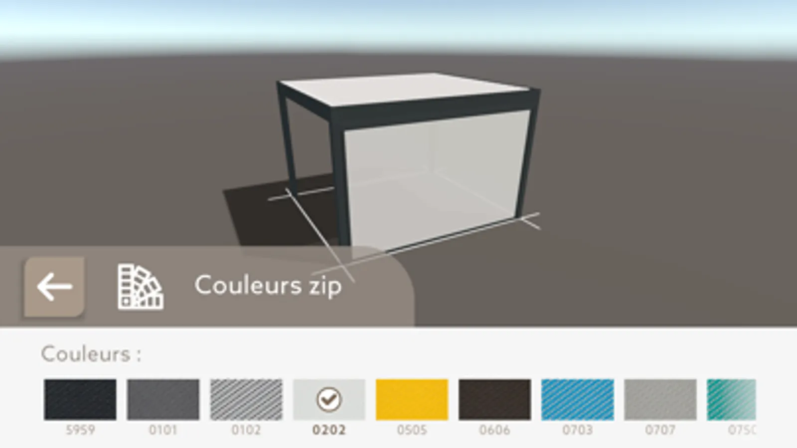 Une version pour les professionnels est disponible et permet de modéliser l’implantation de la pergola dans les moindres détails en pilotant par exemple la hauteur des poteaux ou celles des coulisses des stores zip.