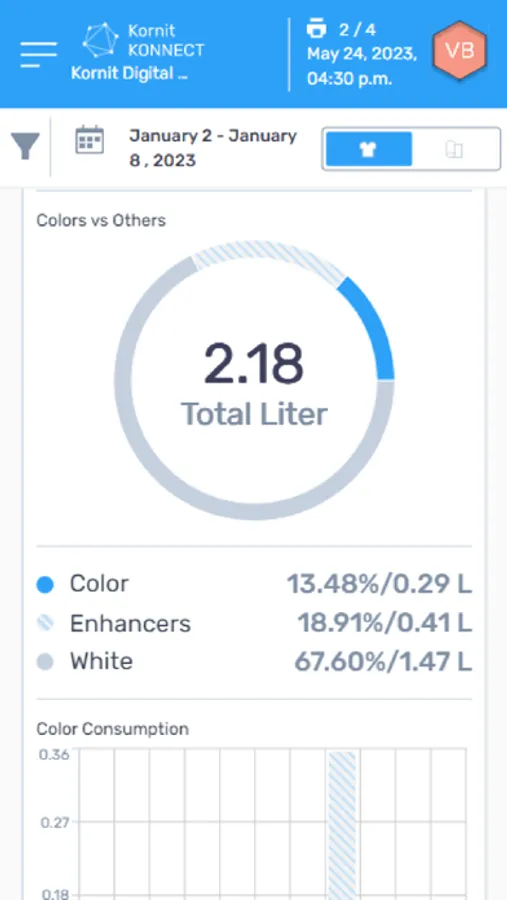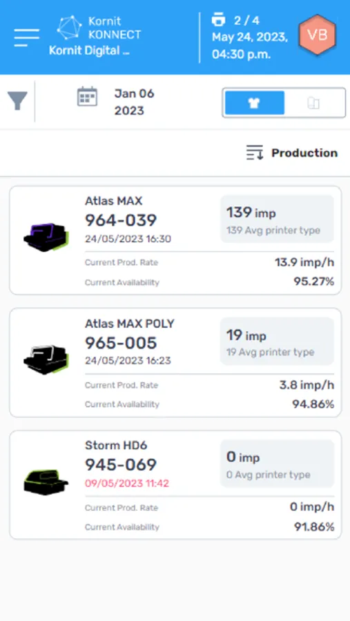 Konnect is Kornit’s cloud-based solution that provides ongoing information about your production activities, such as number of impressions, production rate and current availability.