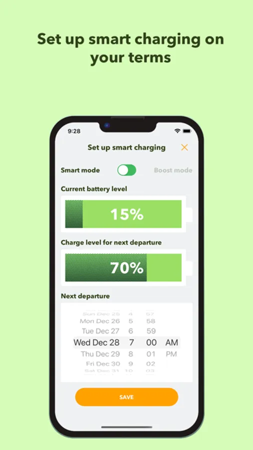 Also with smart charging you're sometimes in a hurry. That's why we make sure you can always have enough range. With the Boost mode your car is charged as fast as possible.