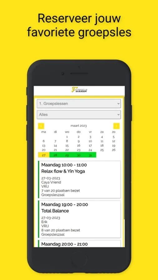 Met de Fitnessclub De Bloesem app kun je o.a.: