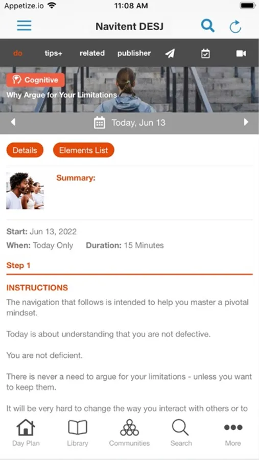 Navitent DESJ is a lite, action-focused extension of the Navitent DeeperEngaged for Social Justice™ Web App. This mobile app connects to a free utility for Black and African-American users to create, deliver, track and collaborate on: any behavioral Trail (Active, Nutritive, Cognitive, Instructive, and Productive tasks); combine them into processes and workflows in Guides (Sessions, Checklists, Posts, and Indexes); organize them into Maps (Courses and Tiered Courses); and curate them in objective-tailored Communities (Campfires, Campsites, and Campgrounds).