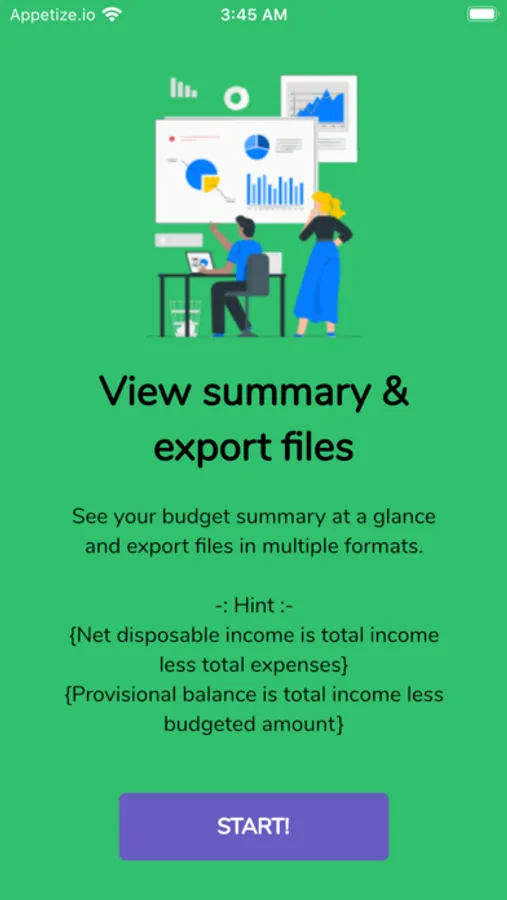 The Ball on a Budget app helps you keep an eye on the your spending patterns. You can arrange your expenditure and revenue in categories and monitor how you spend over time.