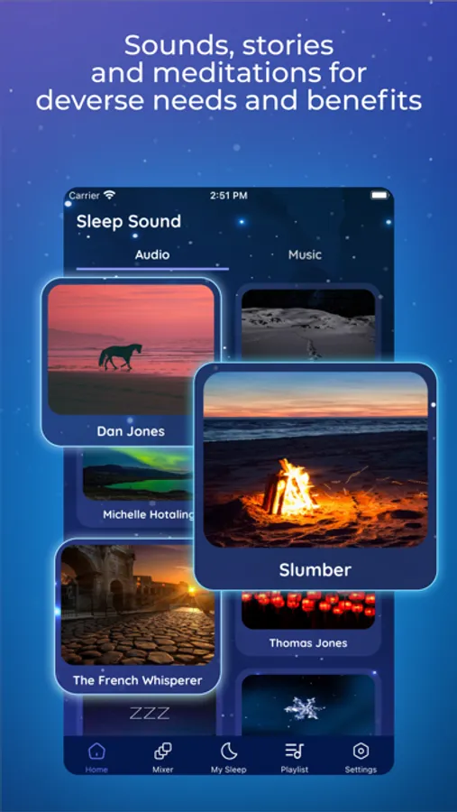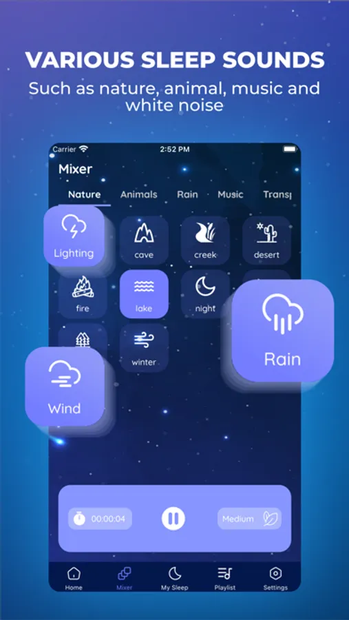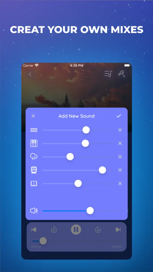 This is app has a rich collection of HD sounds that can be blended into the perfect relaxing atmosphere. You can choose from different types of sounds like rain, nature sounds, city sounds, white noise or instruments. Save your favorite mixes so you're always available when you need them.