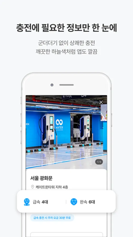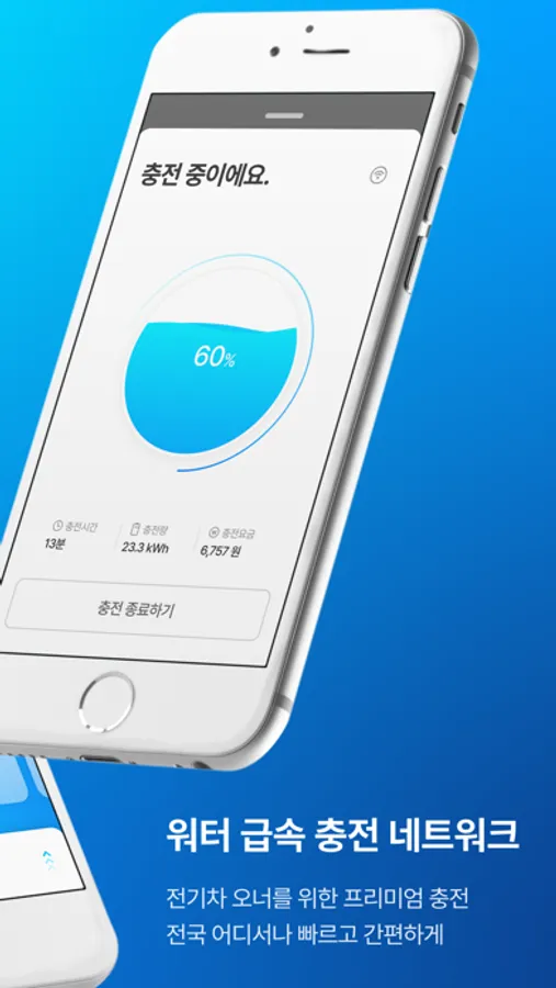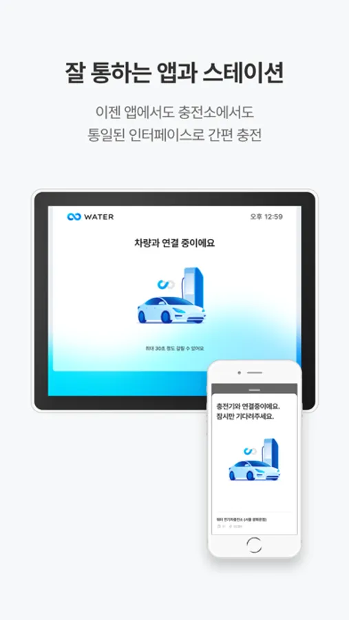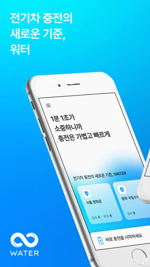 •워터는 곧 전기차의 권리. 어떤 전기차든 쉽고 빠르게 급속 충전돼요.