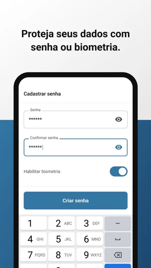 Armazenamento e transporte das suas informações de identificação com maior segurança por meio de proteção biométrica e senha;