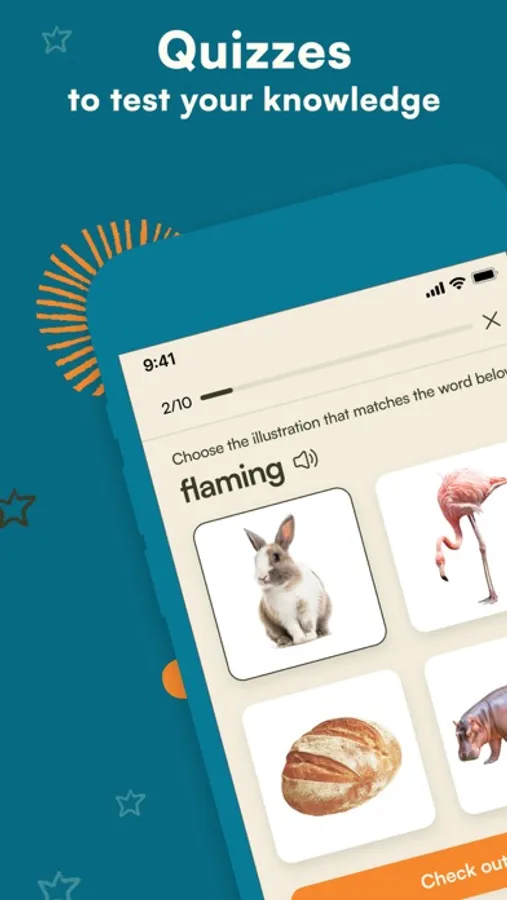 Sounds and images will effectively stimulate the memorization of new concepts and provide great fun. The simple formula will allow you to operate the application safely and unassisted. Words are grouped in 10 themes. You will also find alphabets and quizzes to test your knowledge.