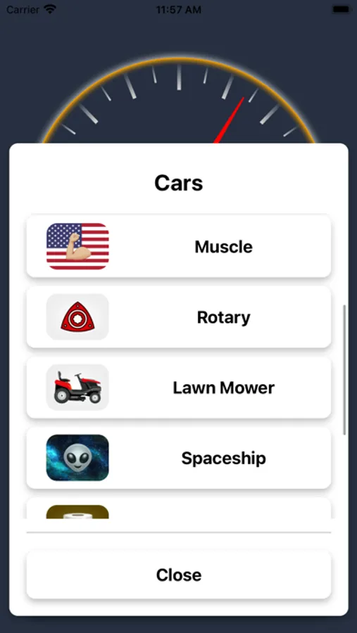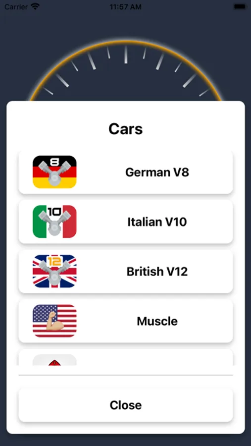 You can choose between multiple car engine sounds and effects, such as a Turbo Whistle and Backfires.