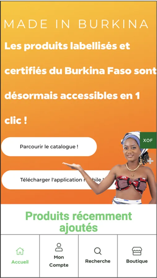 Propulsé par le Ministère de l’Industrie, du Commerce et de l’Artisanat (MICA), Made In Burkina est la plateforme digitale officielle de promotion et de commercialisation des produits labellisés et certifiés du Burkina Faso.