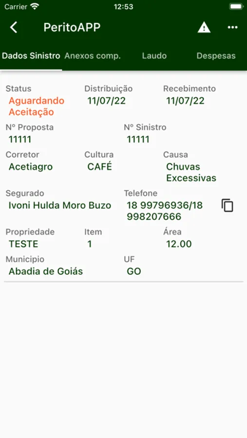 Ele terá acesso aos dados do processo, como seguradora, segurado, apólice, de demais dados do sinistro para realização do laudo.