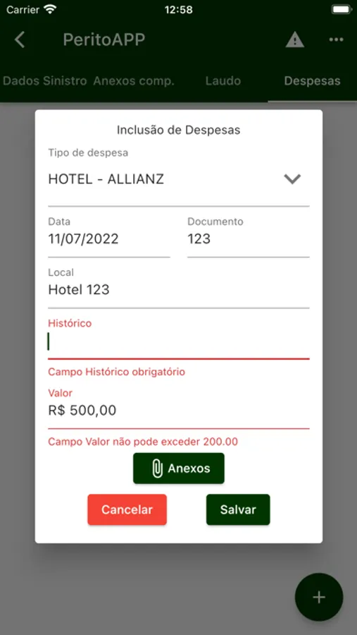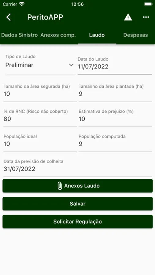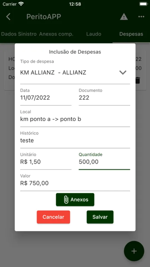 Ao fazer a perícia e confeccionar o laudo, poderá anexá-lo, juntamente de despesas e enviar para regulação.