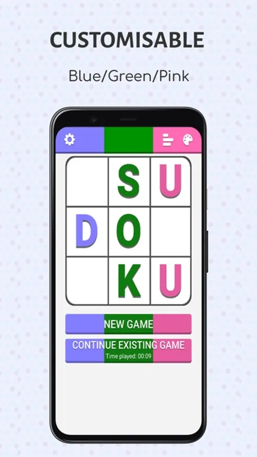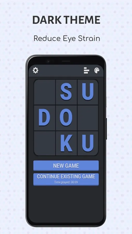 ◆ Auto-save → The game will be saved if you leave it before you finish it. Then you can continue the sudoku puzzle game at any moment.