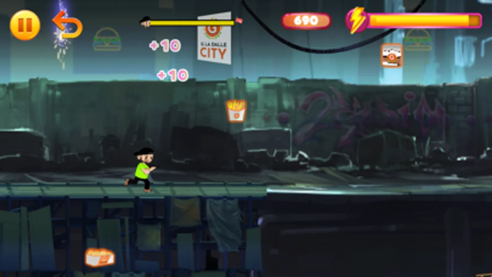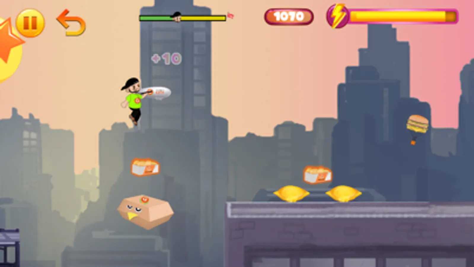 Attrape les bons burger, les boissons rafraîchissantes ou encore le délicieux Tiramisu, qui t’apporteront un max de points mais surtout échappe aux méchantes pommes de terre et aux tomates toxiques, et évite de tomber…