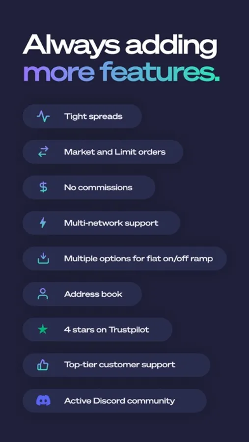 - Multichain support. We give you the option to select what network you want to use to transfer your crypto assets. More choices. More freedom. Less fees.
