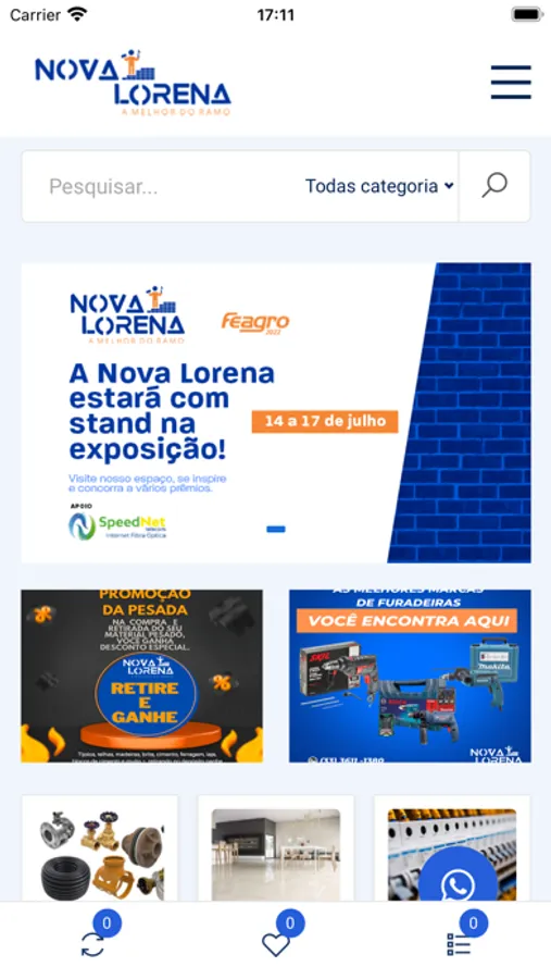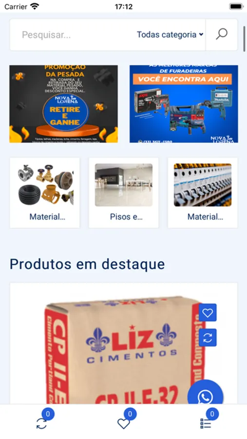Ao acessar nosso app, você tem liberdade de realizar a cotação da sua obra com os produtos da nossa loja. Responderemos com o valor total da sua compra! Isso significa que você pode verificar qualquer produto que desejar sem sair de casa. Basta clicar no botão "Solicitar orçamento" e nos enviar uma mensagem pelo WhatsApp.