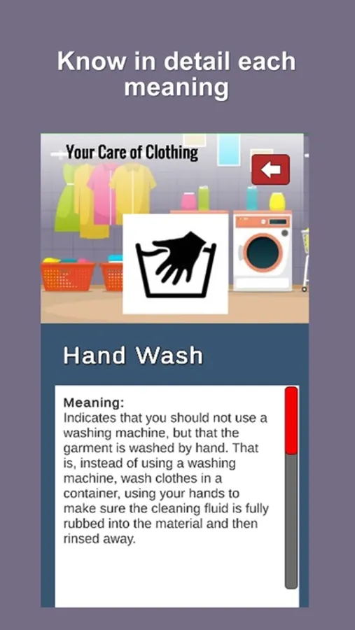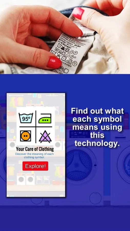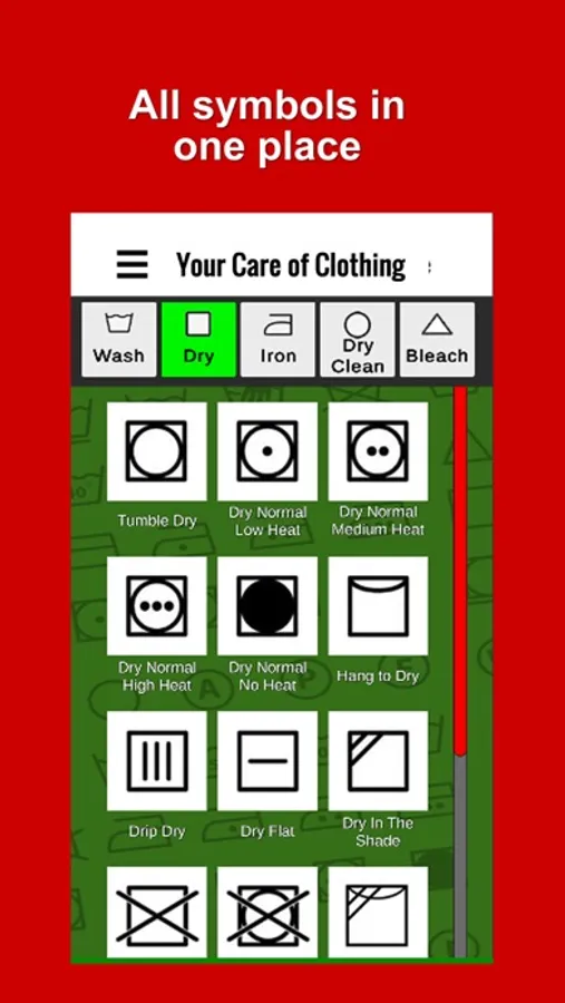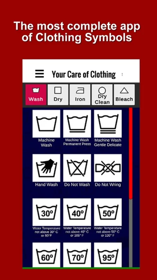 Your Care of Clothing app is the most complete tool with more than 60 elements to know the meaning of each symbol on clothing labels.