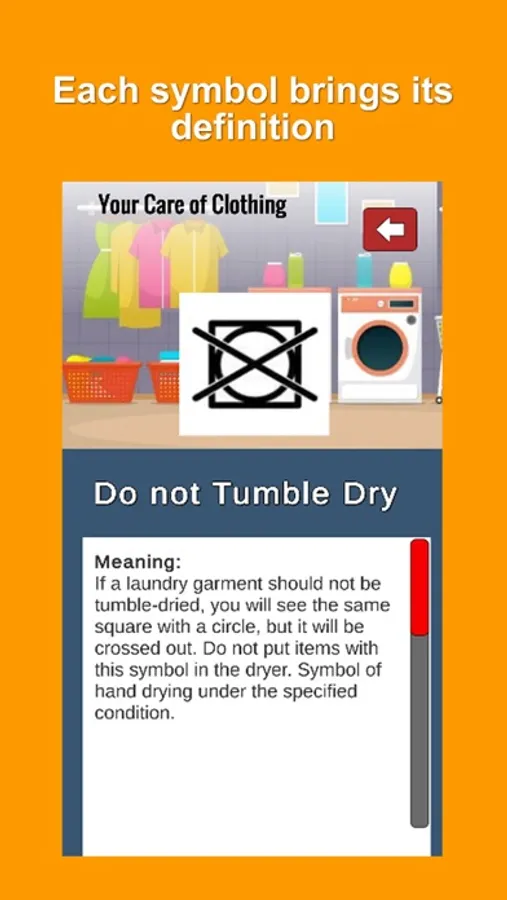 When you go to buy new or used clothes, when you go to the laundromat or dry cleaner, you will be able to better understand the symbols and interpret what they mean by using this tool, so you will give the exact care that it needs.