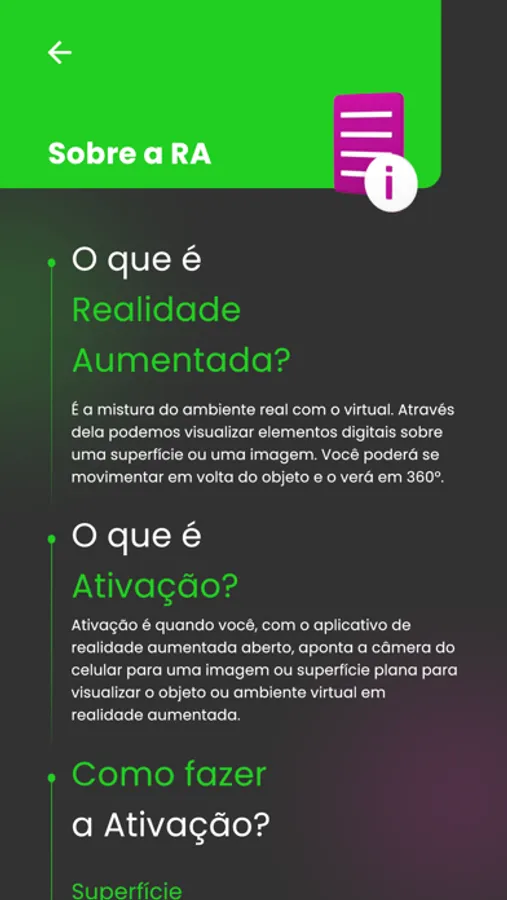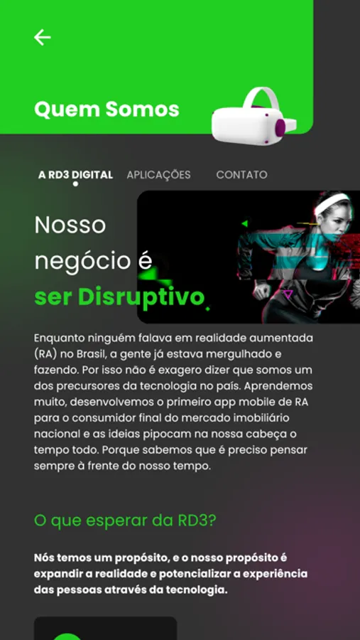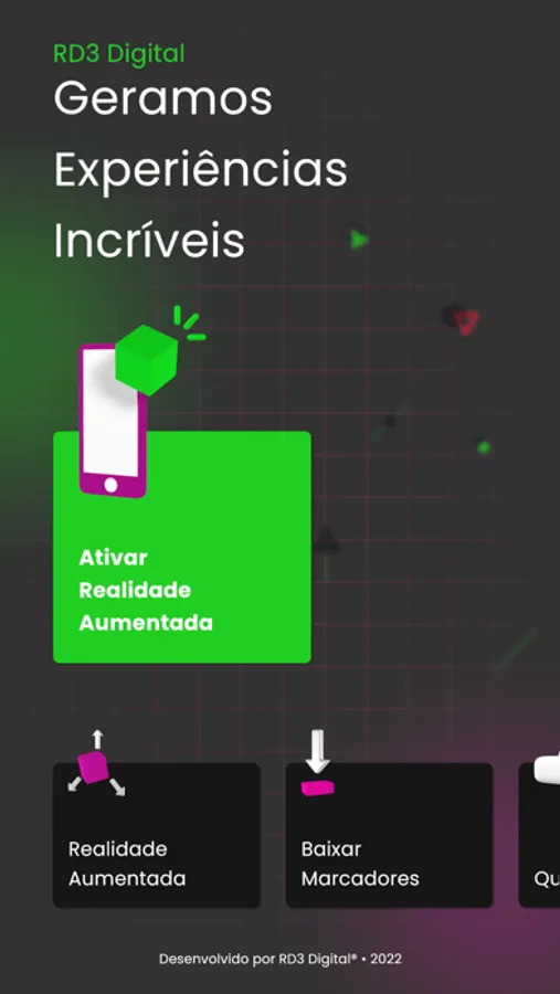 Através deste aplicativo, você poderá conhecer mais detalhes sobre a Realidade Aumentada, formas de usar e conhecer um pouco mais sobre a RD3 Digital.