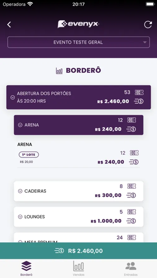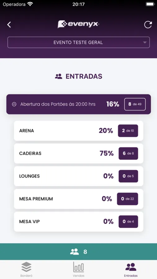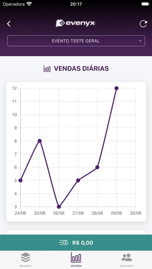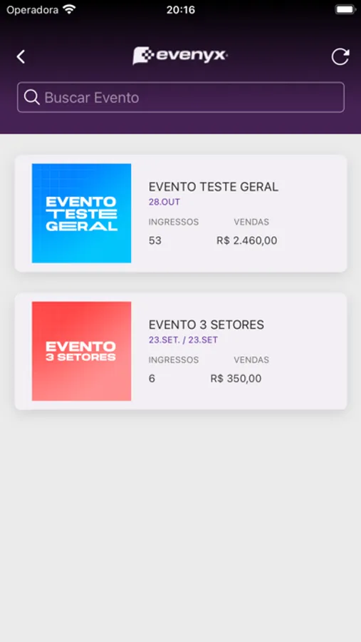 O App Evenyx proporciona aos produtores de eventos um local centralizado para gerenciar suas vendas através de quaisquer canais, sejam eles offline ou online, agregando todas as informações de vendas em um só lugar, dando aos produtores informações sobre cada venda, tais como total de ingressos vendidos, ticket médio, transações pagas e conversão. Tudo isso a qualquer hora e na palma da mão.