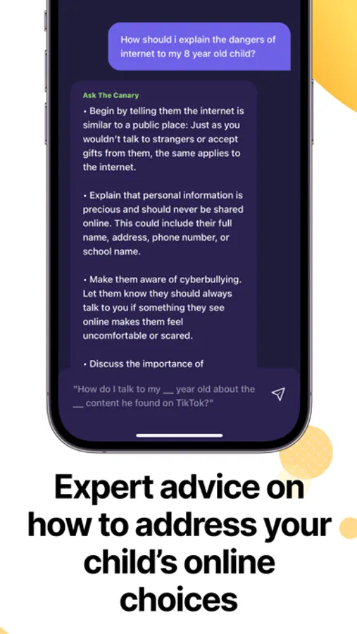 Improve conversations with your kids by learning about the content and people influencing their opinions. Our AI chatbot Ask the Canary gives you instant advice to talk to your child about anything from violent videos to cyberbullying.