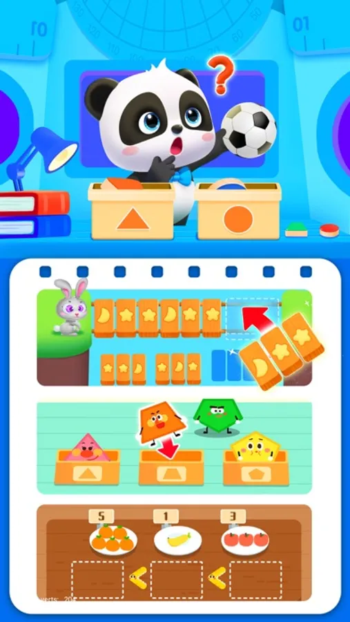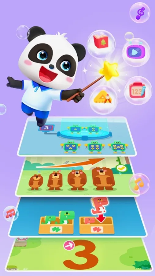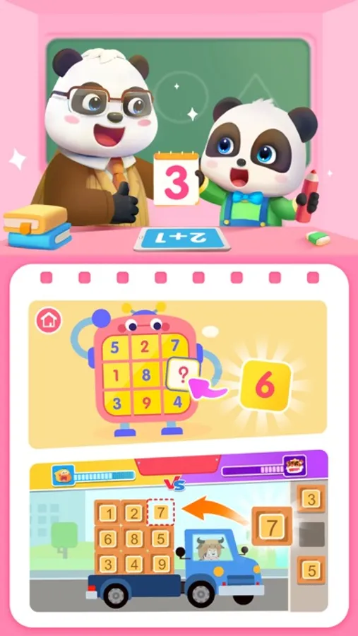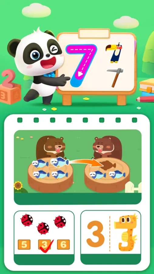In BabyBus Kids Math, there're 6 levels of math knowledge with 100+ math facts, covering topics like number and shape recognition, counting, addition and subtraction, size comparison, sorting, matching, finding patterns, and more! It can meet the learning needs of kids of all ages!