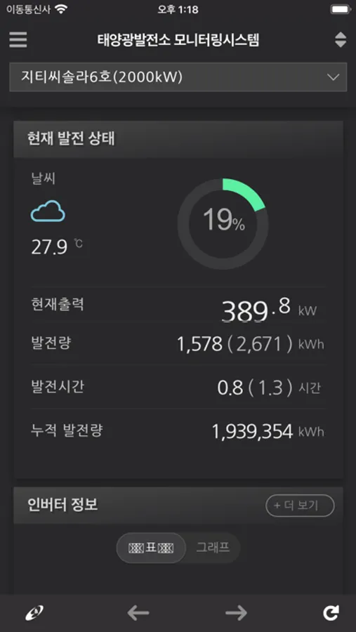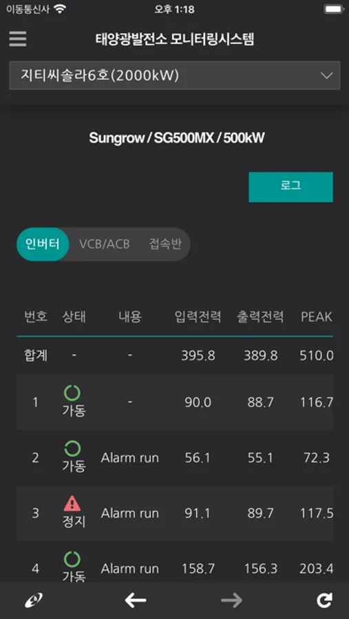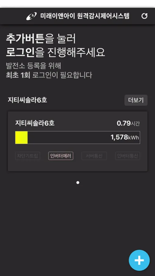 미래E&I 태양광 발전소 모니터링 앱으로 앱을 설치하시면 웹에서 보시는 내용을 그대로 보시는 부분 외에 '푸시 알림' 기능이 제공됩니다.