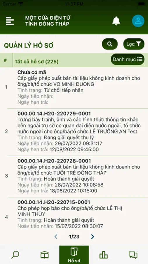 - Xem thống kê, báo cáo tình hình xử lý hồ sơ