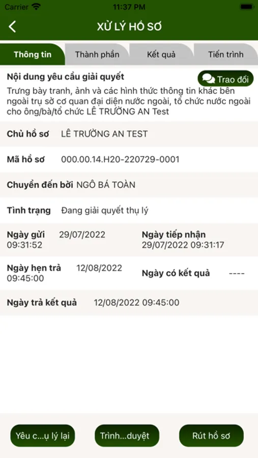 - Nhận thông báo tiếp nhận, thụ lý hồ sơ