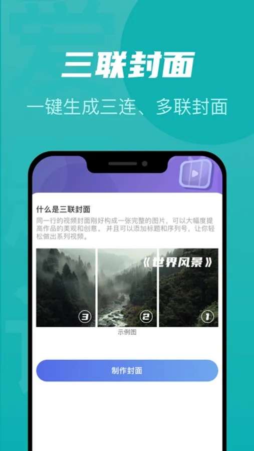 【三联封面】抖快影视短视频达人必备神器,即使你是0基础,也能创建出高大上的三联屏、六联屏、九联屏封面,同时满足两大热门短视频平台视频封面尺寸,也可以灵活裁剪出三宫格、六宫格、九宫格 ,让您的短视频剪辑更便捷。