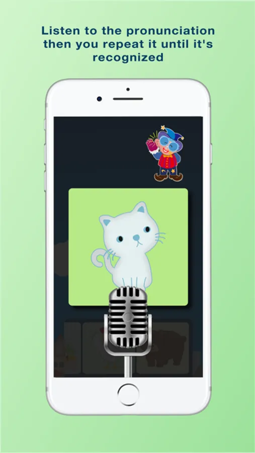 First, select one game from the carousel. Four words are randomly selected and displayed in the drawer at the right side or at the bottom of the screen. In the middle of the screen appears the main image representing a word that is to be paired with one of the images in the panel. Select the image that is related to the main image and drag it from the panel over the main image. If the combination is correct, visual feedback will be displayed and the pronunciation of the word will begin. Listen to the pronunciation then you repeat it until it's recognized.
