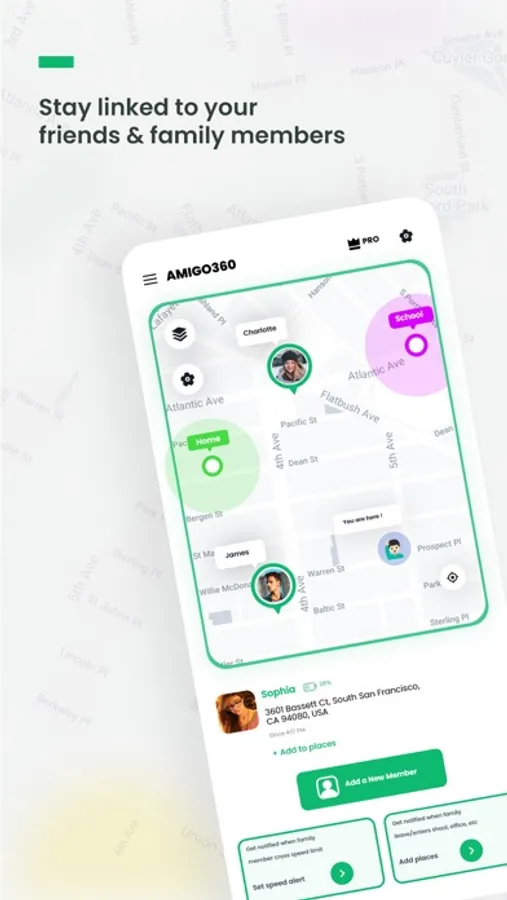 With the Amigo360 Family Locator app, you can use the GPS location of your family members' phones to find out where they are on a live map. This is an intelligent way to keep track of your family's location in real time. All you have to do is put the Amigo360 location tracking and family locator app on the phone you want to use, sign up with the phone number, add the people you want to track to your group, and then start monitoring them. This is the best app for finding family & Friends.