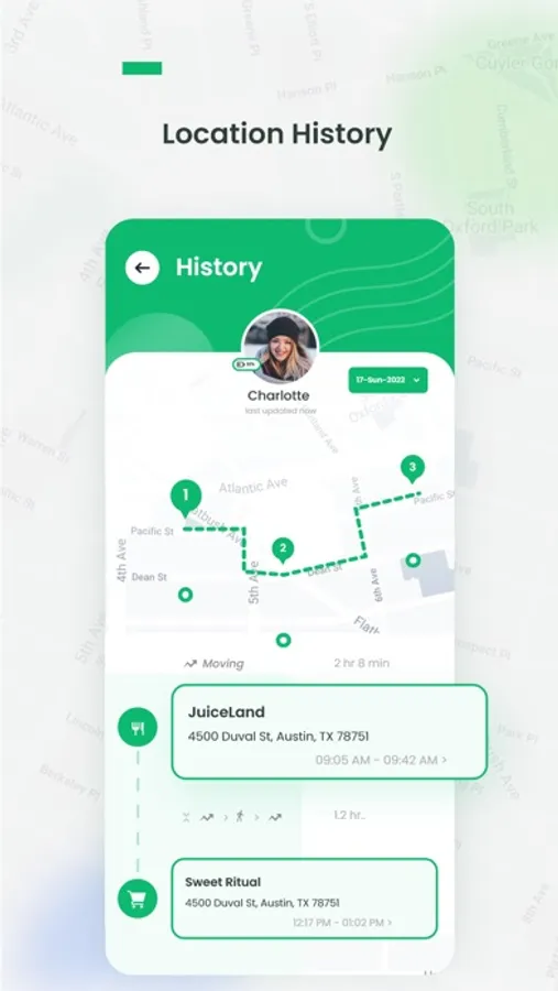 * A complete family GPS location history includes your group's travels and destinations.