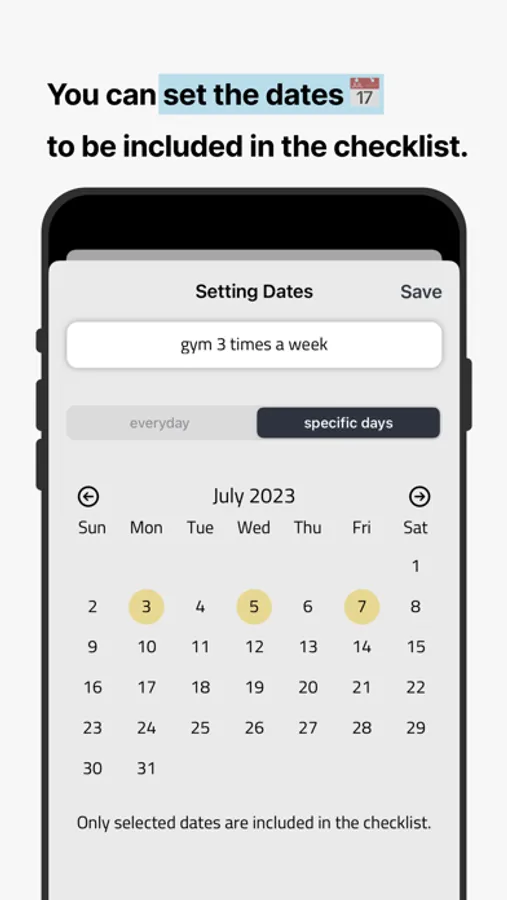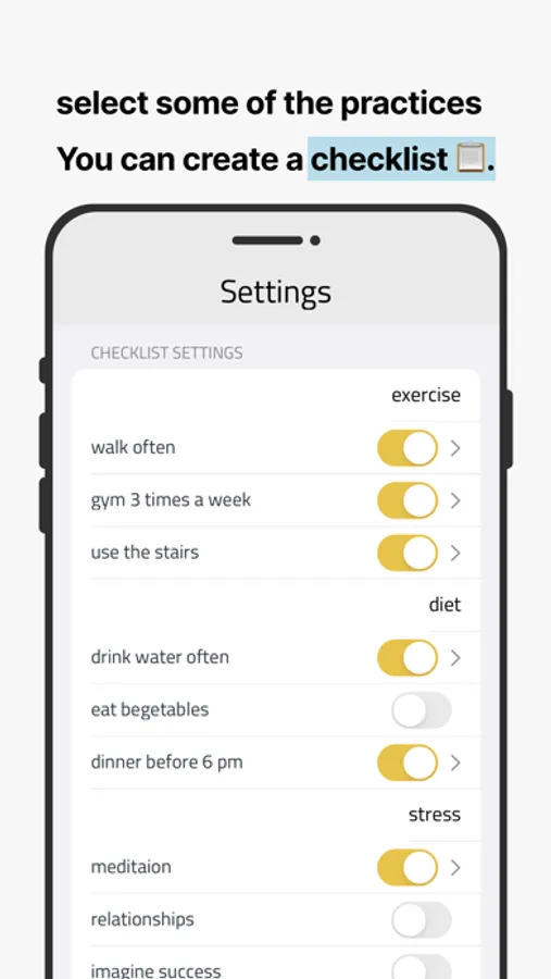 For example, it would not be appropriate to include the practice of "going to the gym three times a week" in the daily checklist.