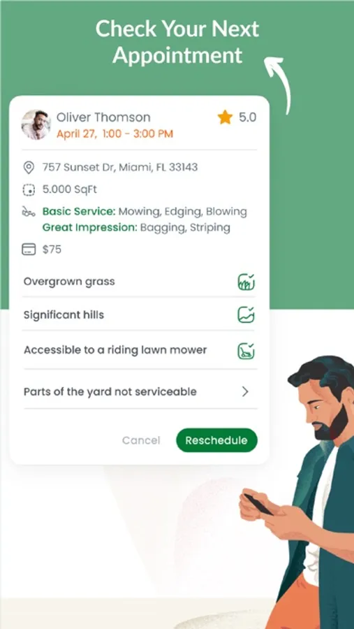 Operating in the Miami metropolitan area. Our trained service members offer basic and advance add-on services at your convenience. Get live updates of your appointment until the completion of your service. Enjoy the benefit of a beautiful lawn by earning continuous rewards through the use of our service as a loyal customer.