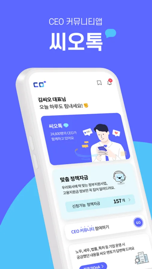 · 씨오톡은 CEO를 대상으로 한 서비스로, 프라이빗한 커뮤니티 조성을 위해 소정의 인증절차 진행 후 가입이 가능합니다.