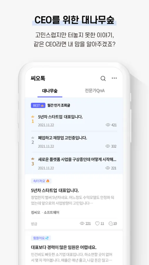 · 고민스럽지만 터놓지 못한 이야기, 같은 CEO라면 내 맘을 알아주겠죠?