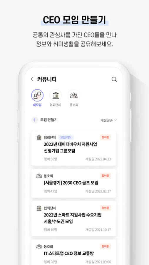· 공통의 관심사를 가진 CEO들을 만나 정보와 취미생활을 공유해 보세요.