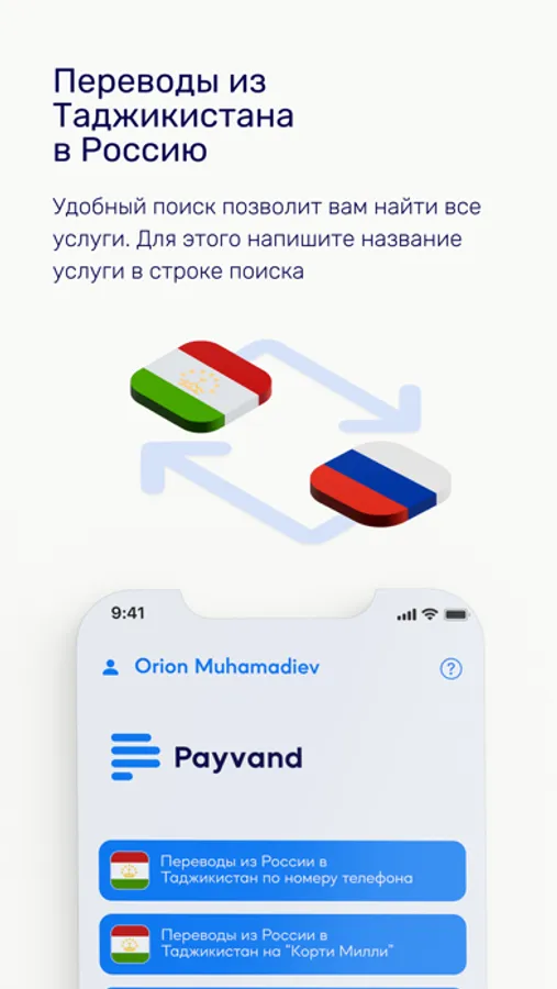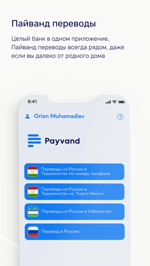 Пайванд переводы — мобильное приложение, позволяющее безопасно отправлять деньги из России в Таджикистан и обратно, а также в другие страны СНГ.