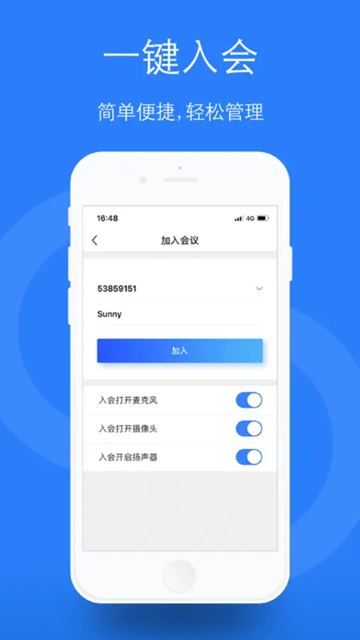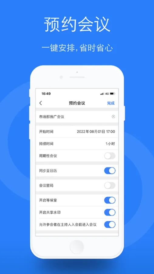 -界面简洁清爽,一键安排会议,发起&加入会议;