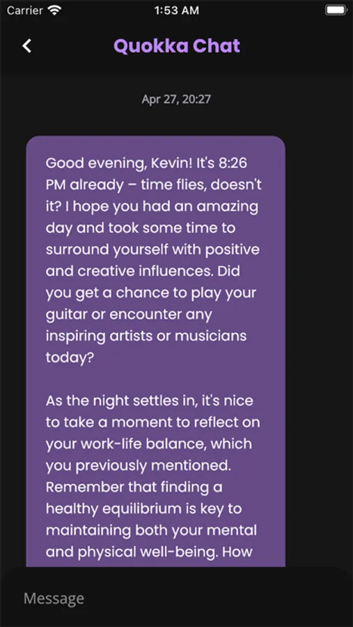 Enhance your mental health journey with our AI chat feature, powered by LLM, and track your progress through the integration with Apple HealthKit. Our app stands out from the competition by offering uniquely tailored advice based on your individual needs and emotional state, making it more effective than other chat apps. The seamless integration of biometric data, collected with Apple HealthKit, ensures a holistic and accurate support experience.