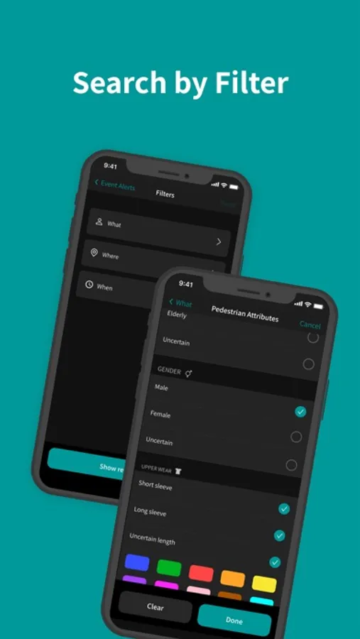 • Search by Filter: Besides time and location filter, we also support searches based on people's facial features using uploaded photos; vehicle search by license plate; and pedestrian search that can be filtered by age, gender, clothing colour, etc.