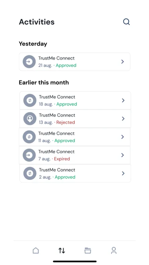 - You can confirm your identity to an another TrustMe user on-line and/or face-to-face