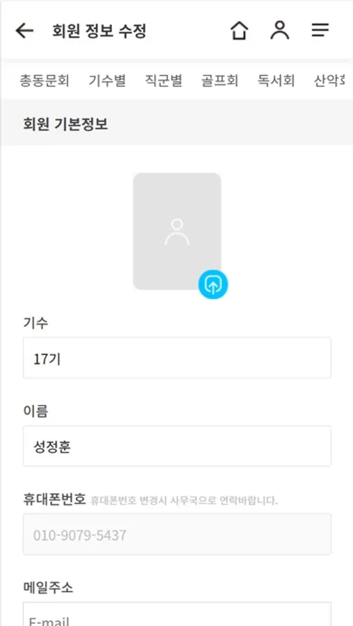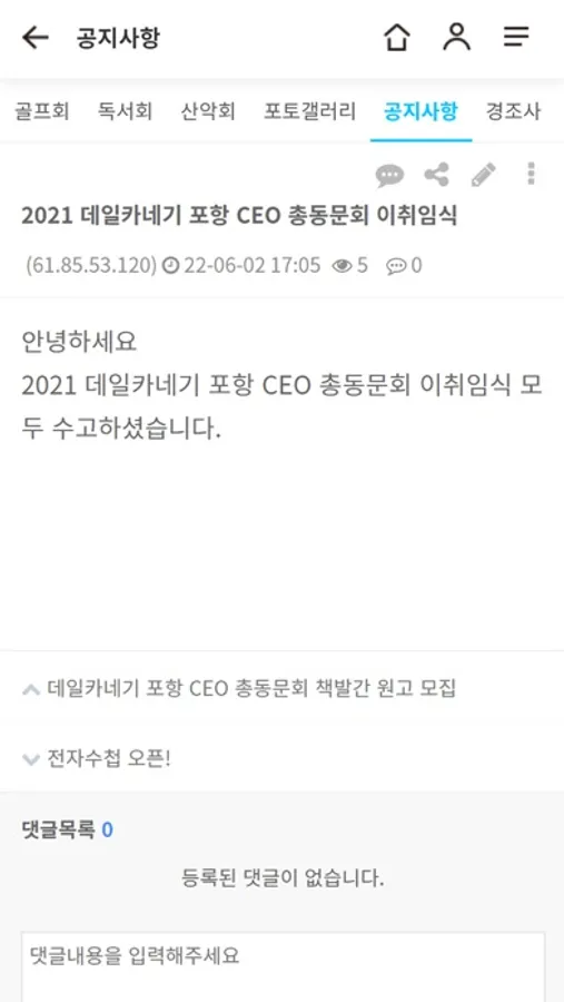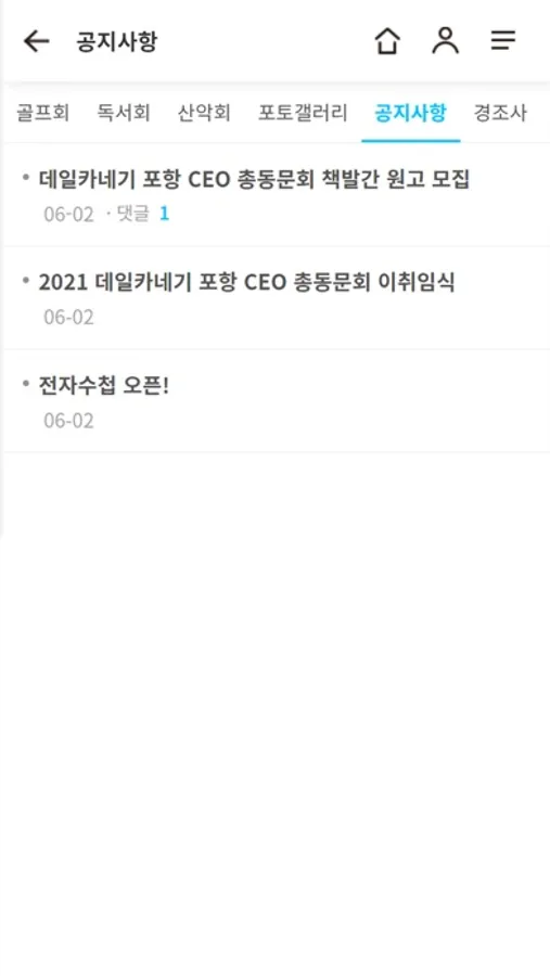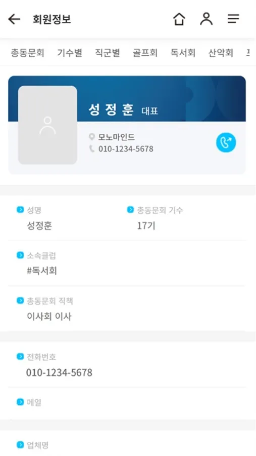 - 골프회, 독서회, 산악회 회원/임원 리스트